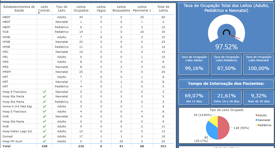 O Distrito Federal registra nesta manhã a ocupação de todos os leitos de UTIs para adultos. O aumento de leitos promovidos pelo governo distrital não tem conseguido atender na velocidade do crescimento das infecções da Covid-19. Neste momento, há 278 pacientes aguardando um leito, 220 dos quais acometidos pela doença viral.