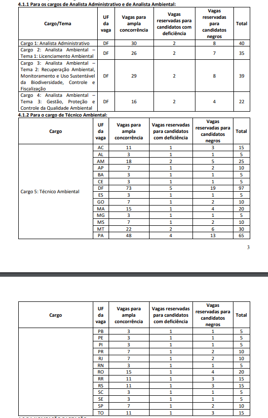 O edital de concurso foi publicado hoje (29) para o provimento o provimento de vagas em cargos de analista administrativo e analista ambiental, que exigem nível superior, e para técnico ambiental da carreira de especialista em meio ambiente, que obriga a comprovação de conclusão de segundo grau (nível médio).