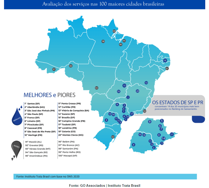 Outro ponto abordado é sobre os investimentos feitos em 2020, que atingiram R$ 13,7 bilhões, valor insuficiente para que seja cumprido as metas do Novo Marco Legal do Saneamento — Lei Federal 14.026/2020.