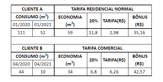 Neste mês de maio, a Caesb encaminhará ao titular da conta, que reduziu seu consumo, um demonstrativo contendo: volume economizado em metros cúbicos no período de apuração; volume básico de cálculo do bônus-desconto em metros cúbicos; tarifa inicial da categoria, em reais por metro cúbico vigente na data; valor do bônus-desconto em reais e a forma de concessão do bônus.