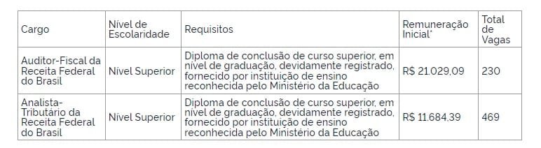 Foi publicado hoje (05) no Diário Oficial da União o edital de concurso público para 699 vagas da carreira tributária e aduaneira da Receita Federal. As vagas foram divididas em 230 para auditor-fiscal e 469 para analista-tributário. Veja o quadro com as vagas e os salários logo abaixo.