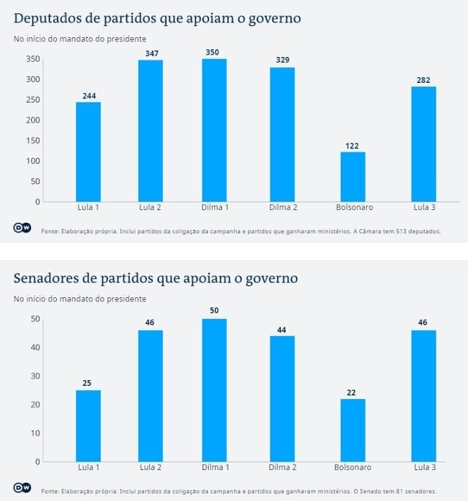Lula já levou isso em consideração na composição de seus ministérios. Ao dar pastas a PDT, MDB, PSD e União Brasil – que não integravam a sua coligação de campanha – o petista ampliou, formalmente, sua base em 160 deputados e 34 senadores.