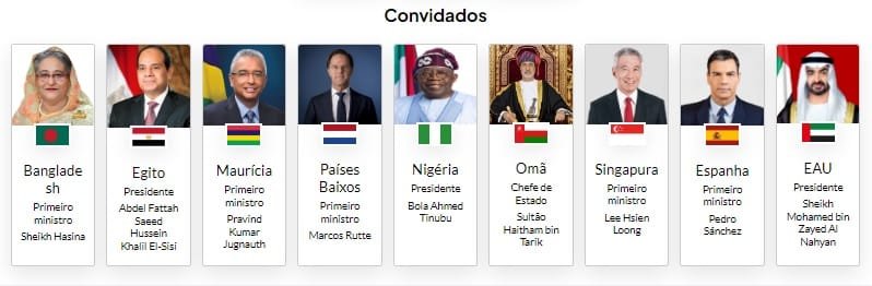 Nove países foram convidados para a cúpula em Nova Deli: Bangladesh, Egito, Maurício, Países Baixos, Nigéria, Omã, Cingapura,