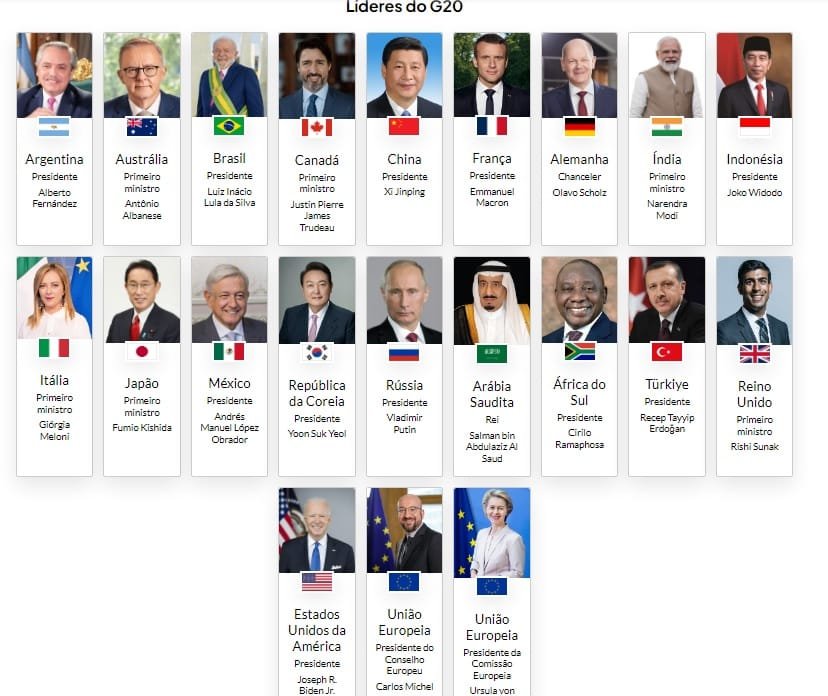 A Cúpula do G20 em Nova Deli, de 9 a 10 de setembro, vai contar com a presença de delegações de liderança das 20 principais economias do mundo, incluindo 19 países e a União Europeia (UE).