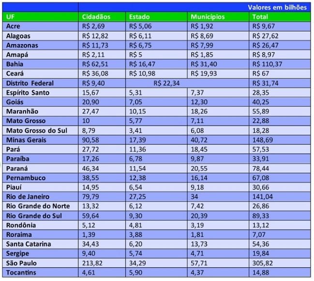 No detalhamento, são R$ 22,34 bilhões para o governo distrital e R$ 9,4 bilhões em benefícios diretos para cidadãos.
