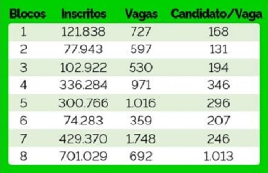 O DF só fica atrás do Rio de Janeiro, que registrou mais de 223 mil pessoas aptas a participar do processo seletivo, e de São Paulo, que passou da marca dos 228 mil.