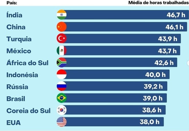É o que mostra um levantamento da OIT analisado por países e divulgado pelo economista Matheus Blauth. Há uma PEC que reduz a hora trabalhada