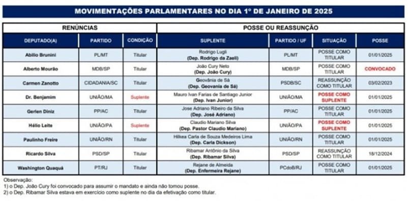 Além desses nove, outros dois deputados federais foram eleitos em outubro do ano passado. Os suplentes já assumiram as vagas