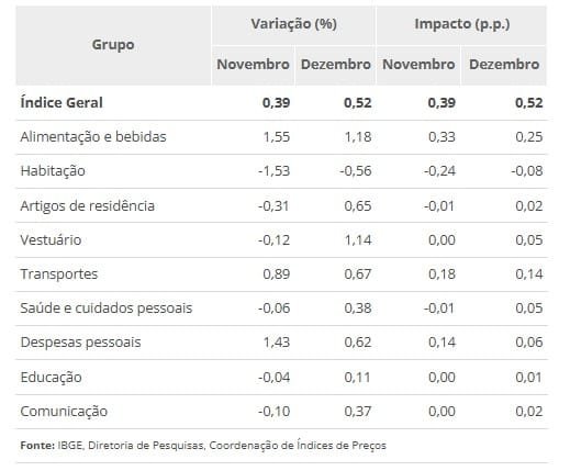 O Índice Nacional de Preços ao Consumidor Amplo (IPCA), que mede a inflação oficial do Brasil, subiu 0,52% em dezembro — apontando para uma aceleração em relação à alta de 0,39% apurada em novembro.