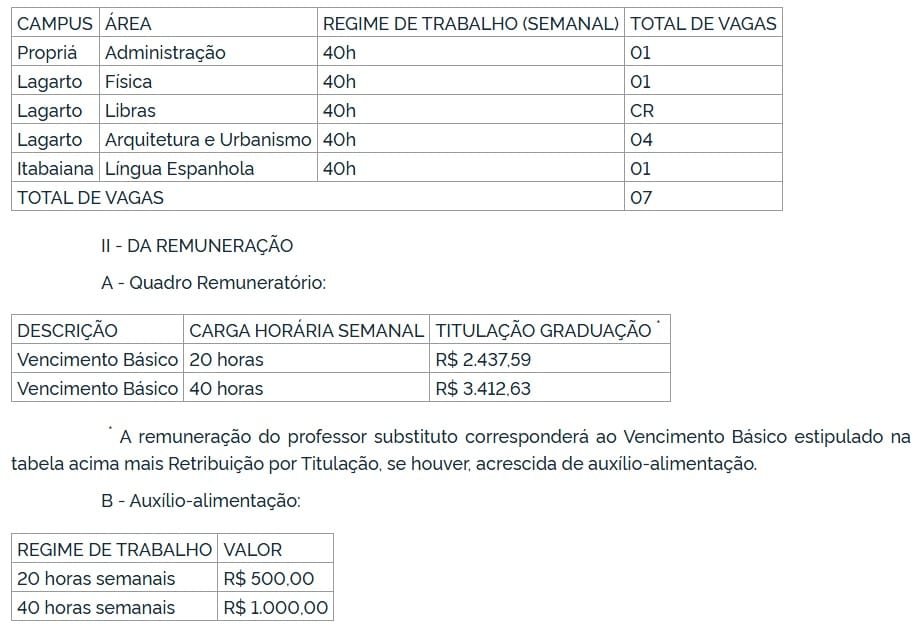 O Instituto Federal de Educação, Ciência e Tecnologia de Sergipe divugou hoje (23) o processo seletivo simplificado para contratação temporária de professor substituto do Ensino Básico, Técnico e Tecnológico.