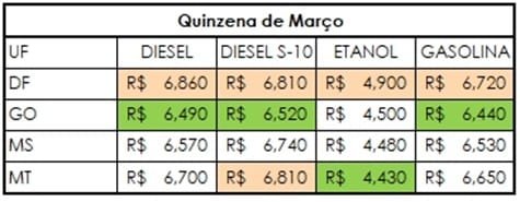 No Centro-Oeste, o preço médio da gasolina caiu durante a primeira quinzena de março, quando comparado com o mesmo período do mês anterior.