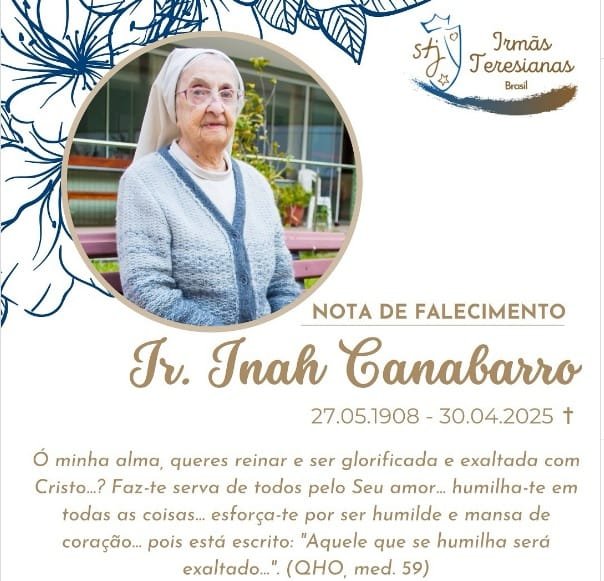 “No dia de hoje, abraça a ressurreição a Irmã Inah Canabarro, rendemos graças pela doação e entrega, pedimos que o Senhor, Pai de bondade, receba-a e acolha-a em seu infinito amor!”, disse a congregação.