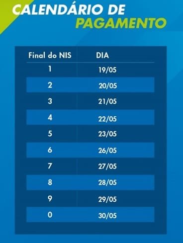 A Caixa realizará o pagamento do benefício referente ao mês de maio no primeiro dia do calendário, independentemente do número do NIS