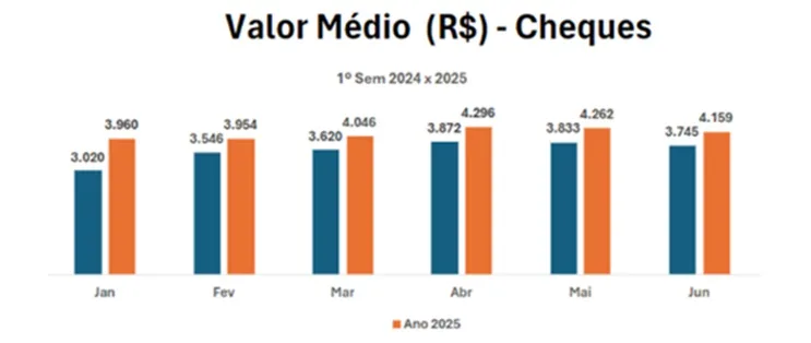 Em 2025, o valor médio dos cheques compensados foi de R$ 4.118, contra R$ 3.606 em 2024.