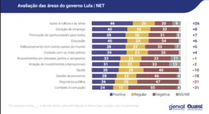 Pesquisa Genial/Quaest divulgada nesta terça-feira (16) aponta que o governo do presidente Lula da Silva (PT) é desaprovado por 49% dos brasileiros. Ao mesmo tempo, 48% dizem aprovar a gestão federal.