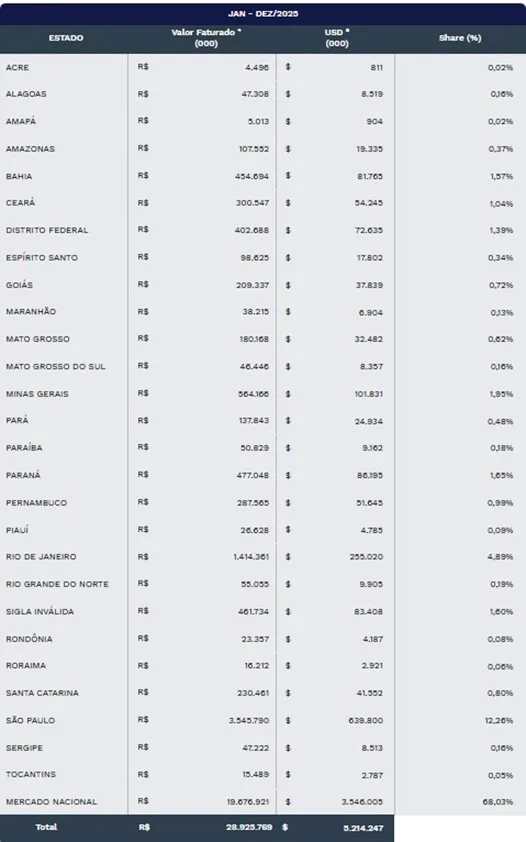 O painel, que reúne dados de 330 agências no Brasil (258 matrizes e 72 filiais), reflete o faturamento dos Pedidos de Inserção (PIs) efetivamente veiculados e consolidados por meio, período, estado e região.