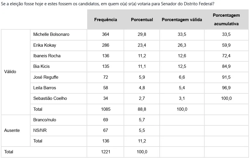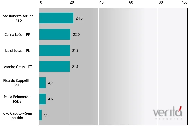 O levatamento foi realizado pelo Instituto Veritá com 1.221 entrevistados para medir a percepção da população com o pleito e com os pré-candidatos ao governo distrital e o senado.