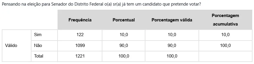 Senador – Pensando na eleição para Senador do Distrito Federal o(a) sr(a) já tem um candidato que pretende votar?